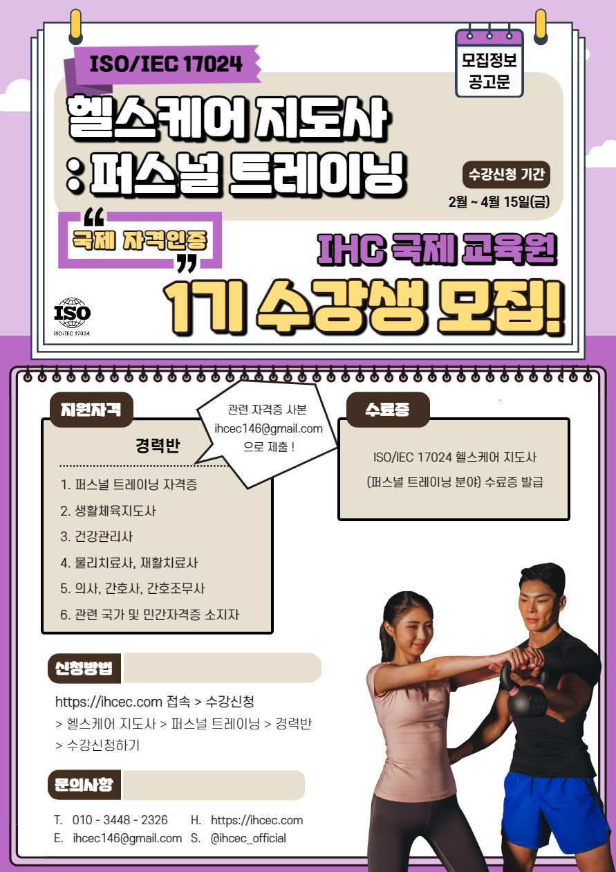 ※ISO/IEC 17024 헬스케어 지도사 : 퍼스널 트레이닝 1기 회원을 모집합니다!※
